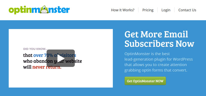OptinMonster: No podemos decir suficientes cosas buenas sobre este impresionante plugin. Añade una ventana emergente o un cuadro de notificación adhesivo para que los lectores se suscriban a tus listas de correo.